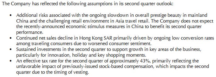 Disclaimer: I have a beneficial long position in Estee Lauder stock. Stocks mentioned are not investment advice. I can’t guarantee the accuracy of the information provided in the newsletter. All statements express personal opinions and information gathered online. Any estimates or forward looking statements made are unreliable. Any information in this newsletter is for educational and entertainment use only and should not be taken as investment advice.