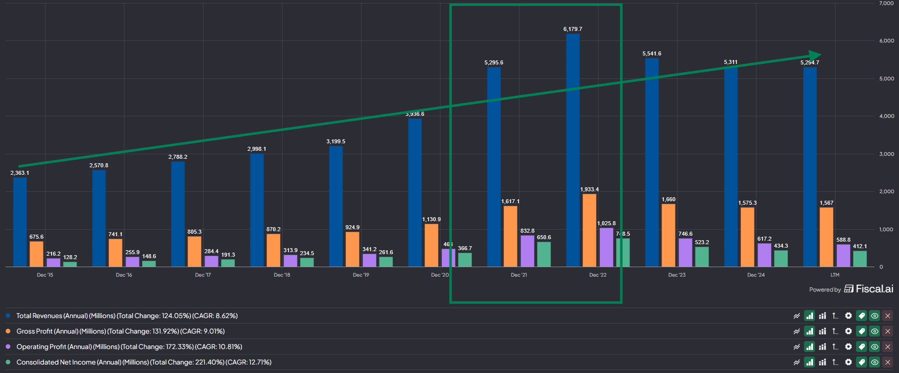 Revenue growth of 7.3% (This was the companies average revenue growth before the pandemic boom, its also in the lower end of their long term guidance)