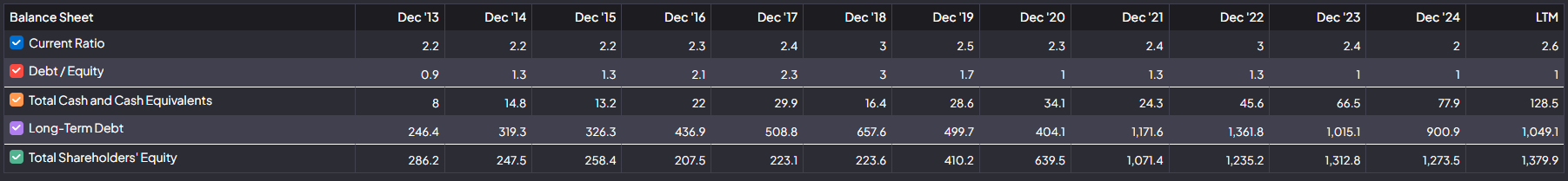 Turning to the companies financial health. POOL has a fairly strong balance sheet. Below I look at Five metrics.